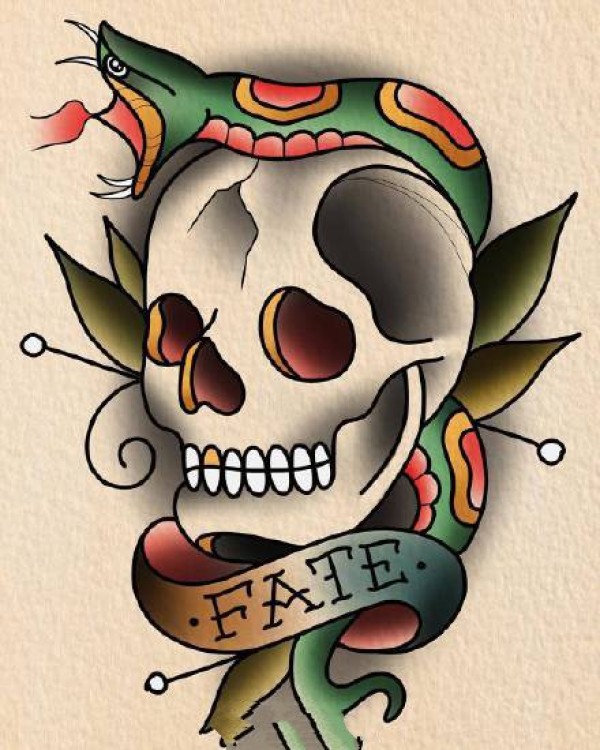 9张oldschool风格的骷髅纹身手稿图片