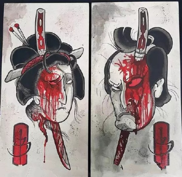 传统艺妓般若纹身图案手稿