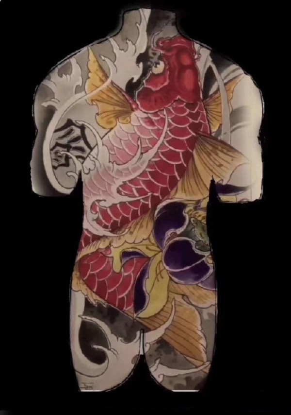 一组满背大气九龙拉棺纹身图案作品和手稿