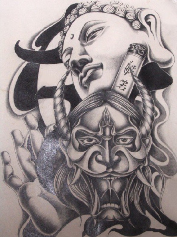 传统艺妓般若纹身图案手稿