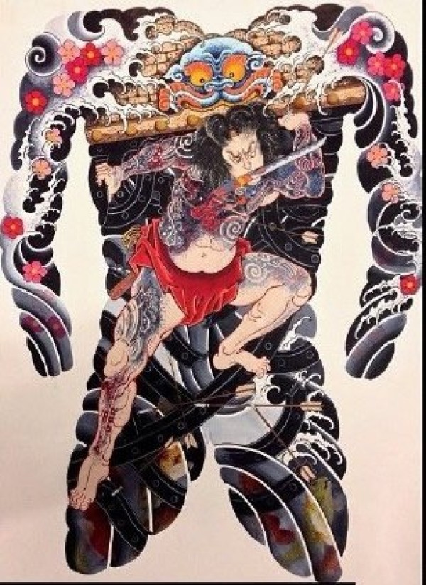 一组满背大气九龙拉棺纹身图案作品和手稿