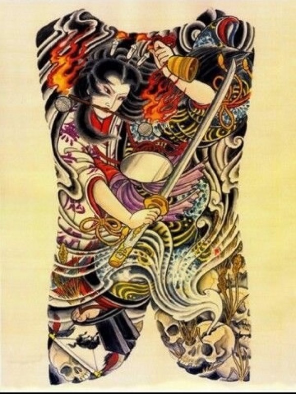 一组满背大气九龙拉棺纹身图案作品和手稿