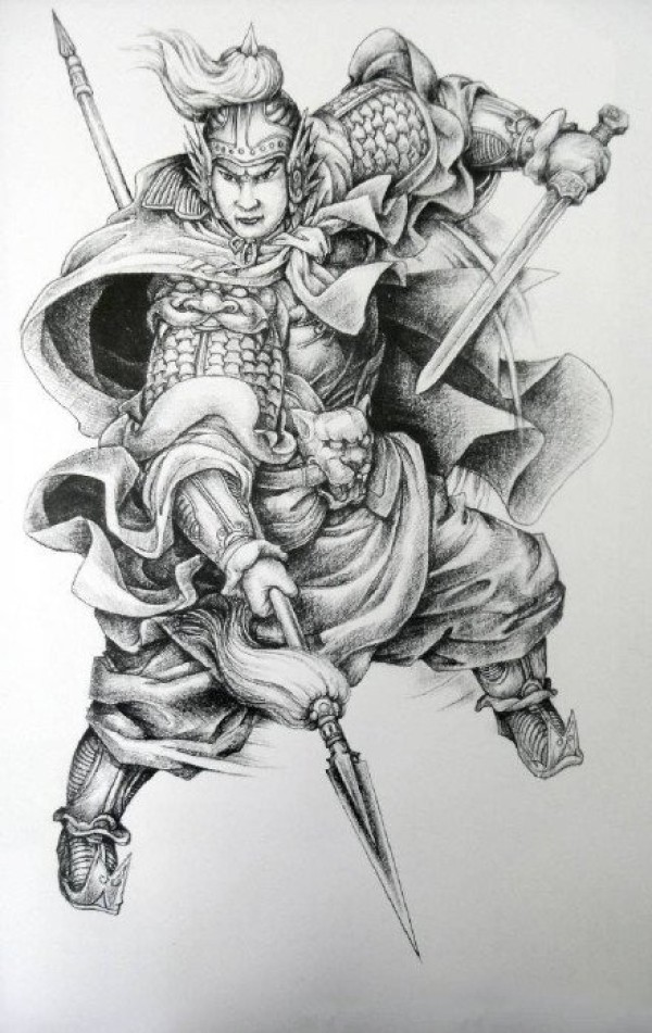 半甲唐狮手稿 传统的9款唐狮主题半甲纹身手稿图片