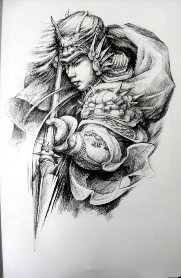 半甲唐狮手稿 传统的9款唐狮主题半甲纹身手稿图片