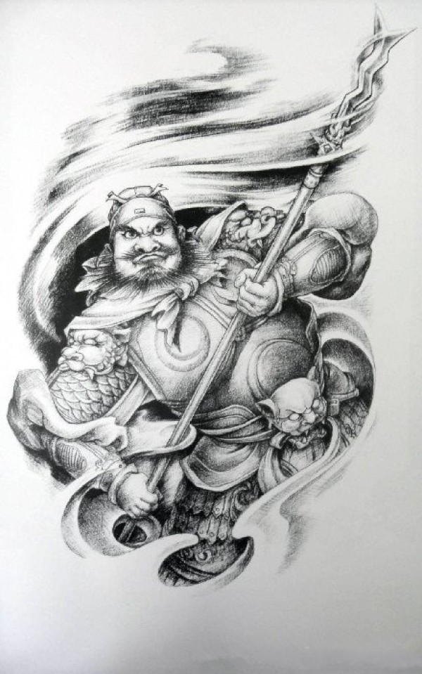 一组满背大气九龙拉棺纹身图案作品和手稿