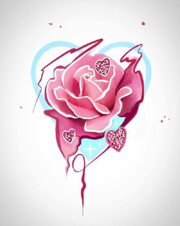 一组水彩泼墨的玫瑰花朵纹身手稿图片