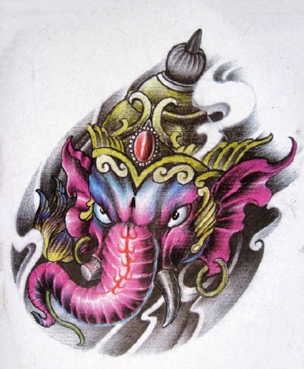 半甲唐狮手稿 传统的9款唐狮主题半甲纹身手稿图片