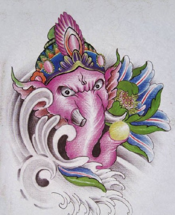 35组传统的象神纹身手稿图片欣赏