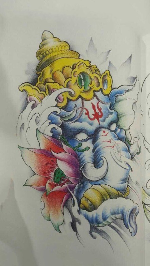 35组传统的象神纹身手稿图片欣赏