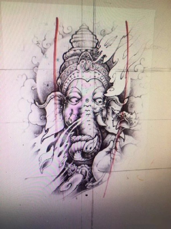 半甲唐狮手稿 传统的9款唐狮主题半甲纹身手稿图片