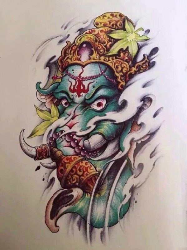 半甲唐狮手稿 传统的9款唐狮主题半甲纹身手稿图片