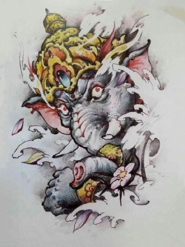 半甲唐狮手稿 传统的9款唐狮主题半甲纹身手稿图片