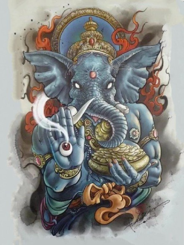 35组传统的象神纹身手稿图片欣赏