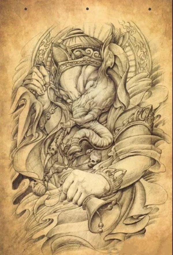 半甲唐狮手稿 传统的9款唐狮主题半甲纹身手稿图片