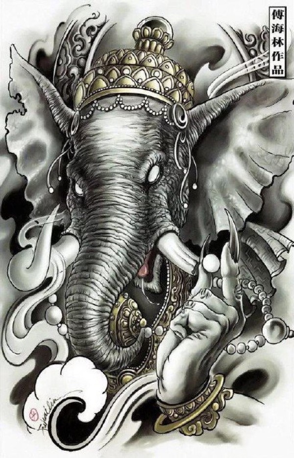 半甲唐狮手稿 传统的9款唐狮主题半甲纹身手稿图片