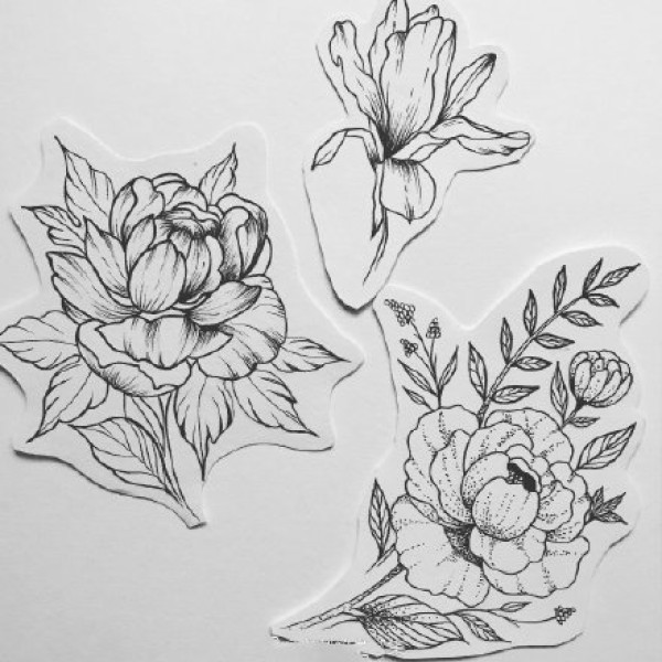 一组花卉植物的纹身手稿图片欣赏