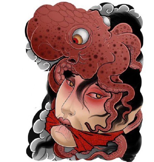 传统艺妓般若纹身图案手稿