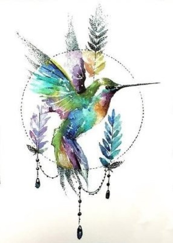 一组蜂鸟等小鸟主题的水彩是手稿纹身图片