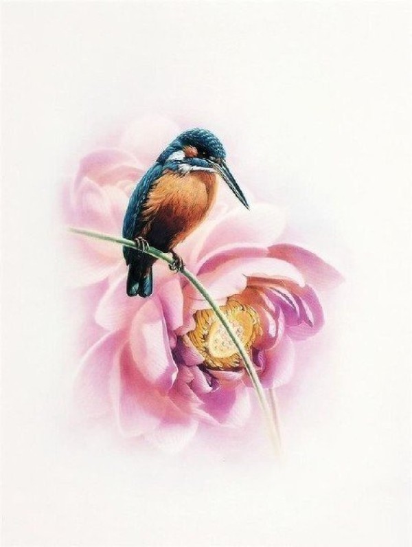 一组蜂鸟等小鸟主题的水彩是手稿纹身图片