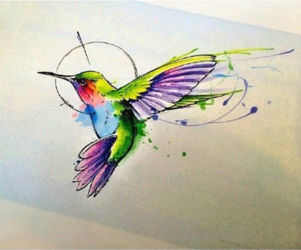 一组蜂鸟等小鸟主题的水彩是手稿纹身图片
