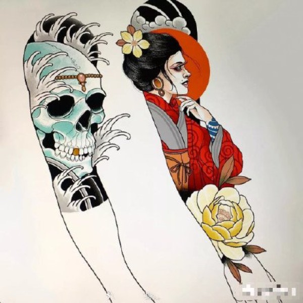 传统艺妓般若纹身图案手稿
