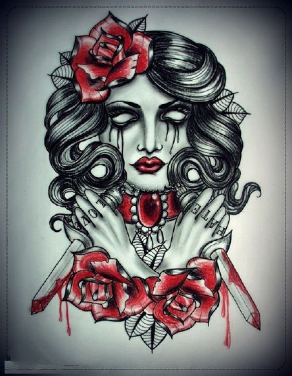 9款不错的暗黑欧美女郎人像纹身手稿图片
