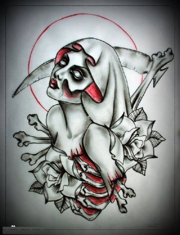 9款不错的暗黑欧美女郎人像纹身手稿图片