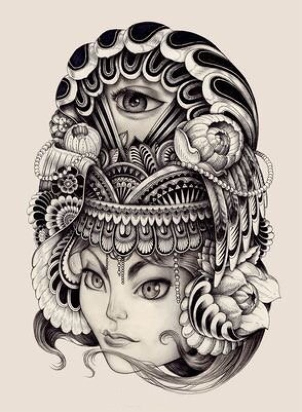 9款很有创意的女郎人物插画纹身手稿图片