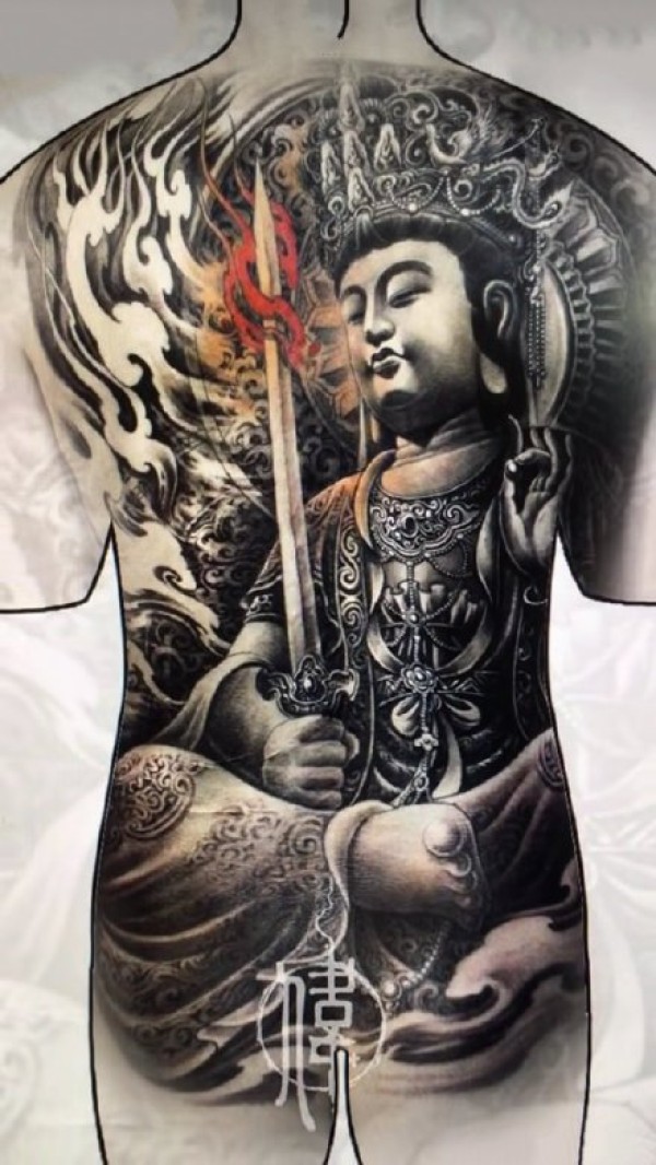 一组满背大气九龙拉棺纹身图案作品和手稿