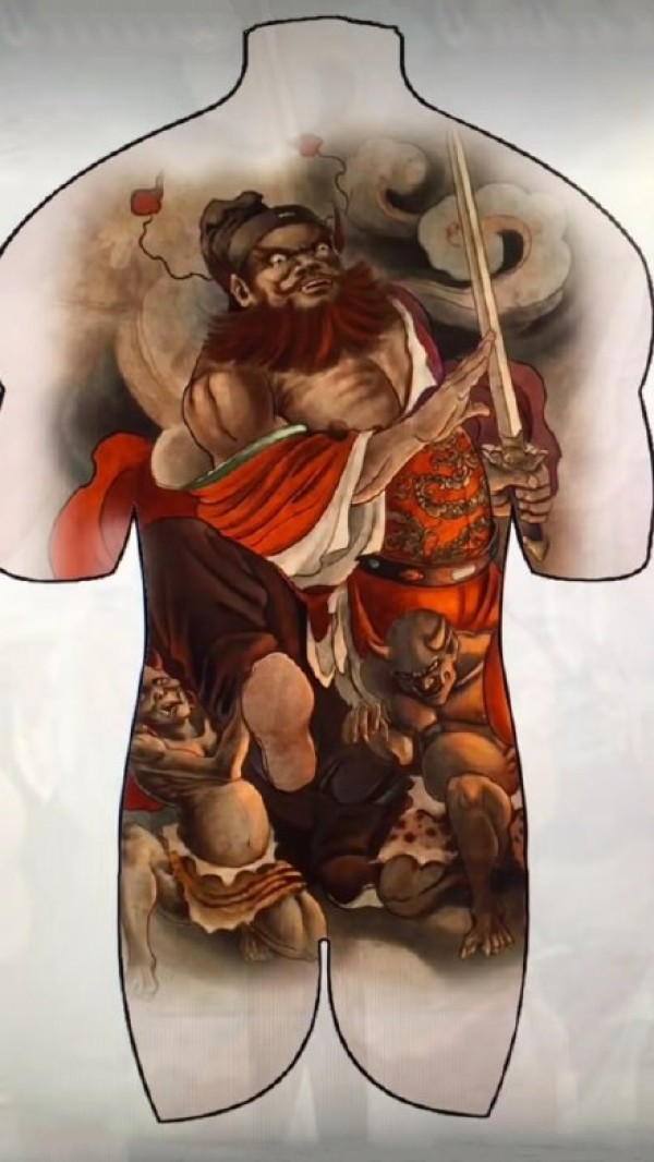 一组满背大气九龙拉棺纹身图案作品和手稿