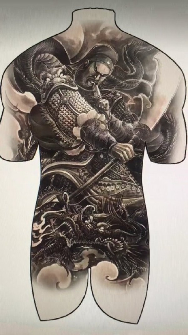 一组满背大气九龙拉棺纹身图案作品和手稿