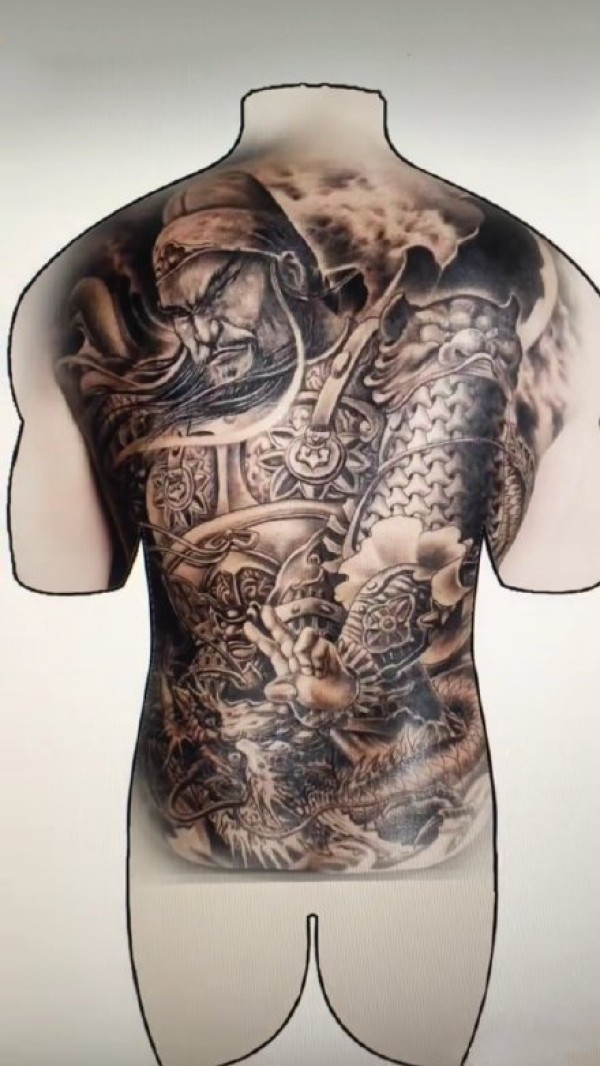 一组满背大气九龙拉棺纹身图案作品和手稿