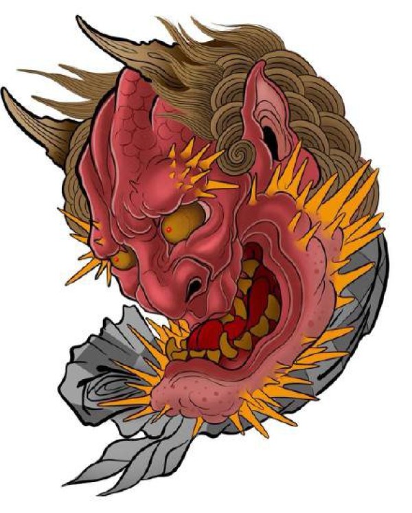 半甲唐狮手稿 传统的9款唐狮主题半甲纹身手稿图片