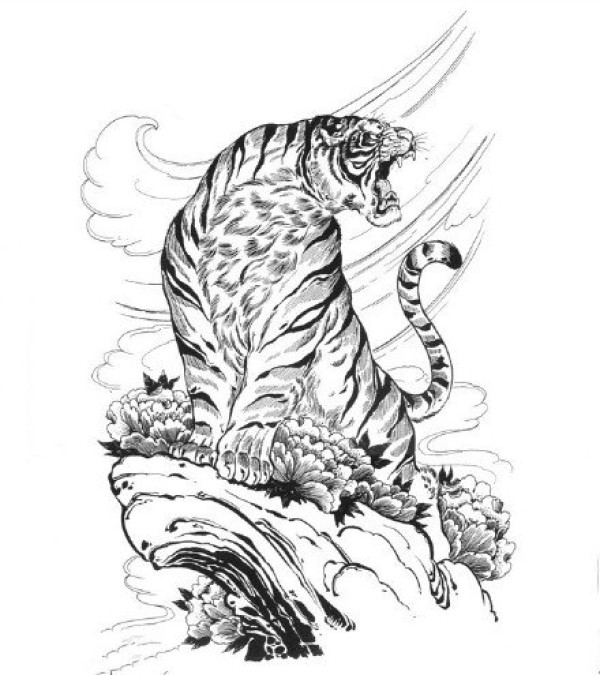 半甲唐狮手稿 传统的9款唐狮主题半甲纹身手稿图片