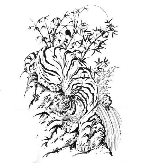 16款神态各异的老虎纹身手稿图片