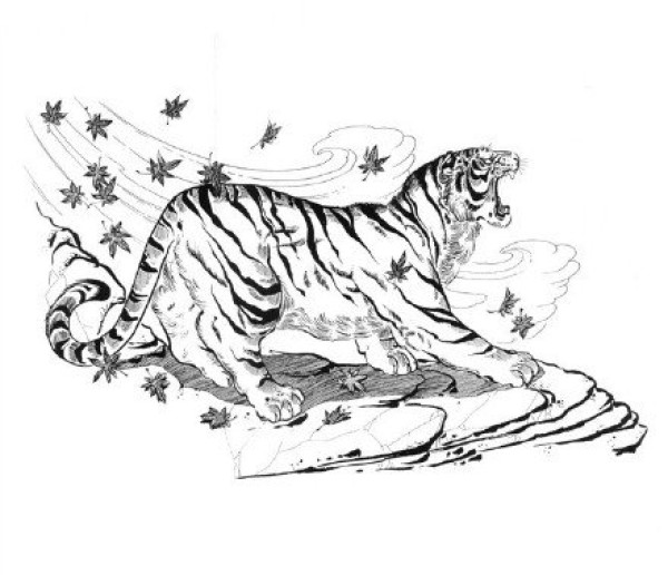半甲唐狮手稿 传统的9款唐狮主题半甲纹身手稿图片