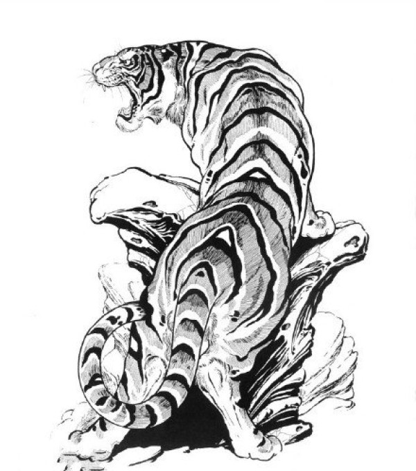 半甲唐狮手稿 传统的9款唐狮主题半甲纹身手稿图片