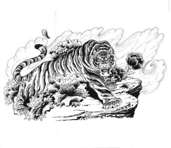 半甲唐狮手稿 传统的9款唐狮主题半甲纹身手稿图片