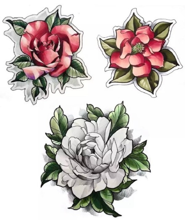 彩色的一组创意花卉纹身手稿图片赏析