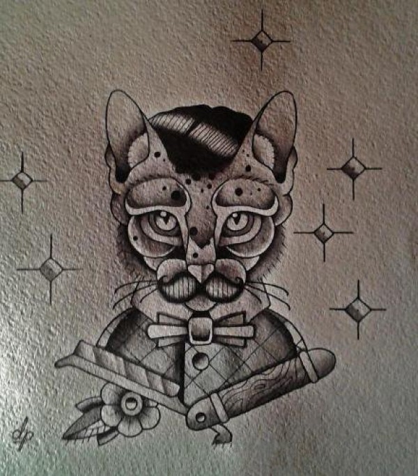小清新猫头主题的一组猫神纹身素材手稿