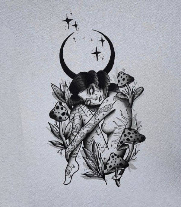 传统艺妓般若纹身图案手稿