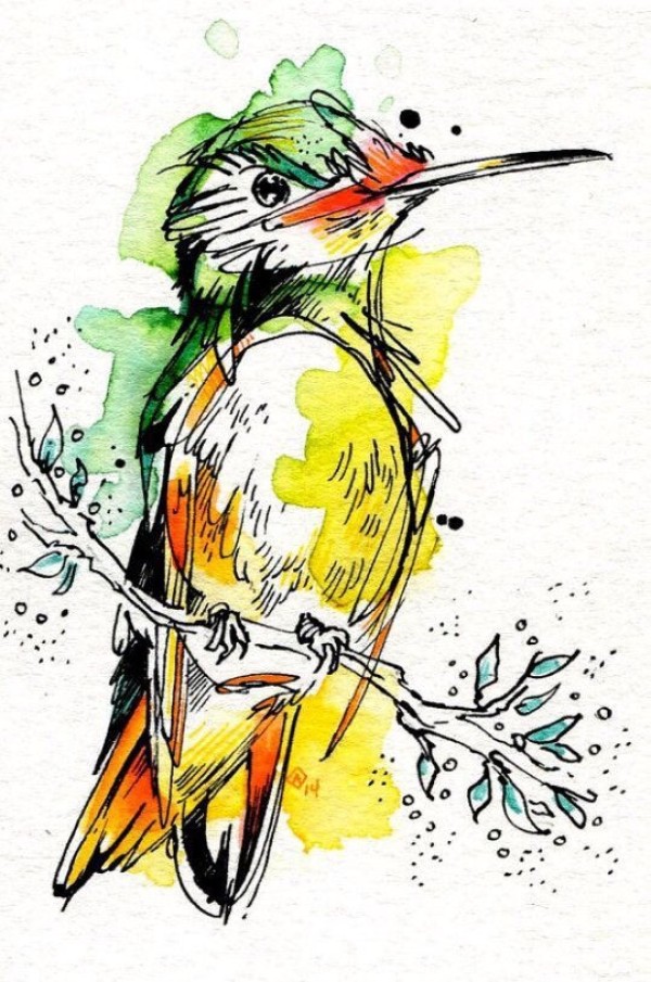 15款漂亮的水彩小鸟纹身手稿素材图片
