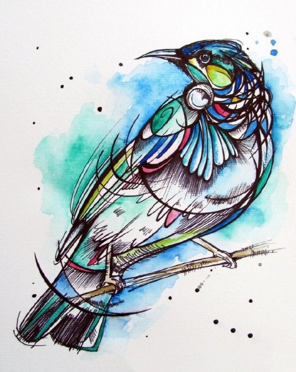 15款漂亮的水彩小鸟纹身手稿素材图片