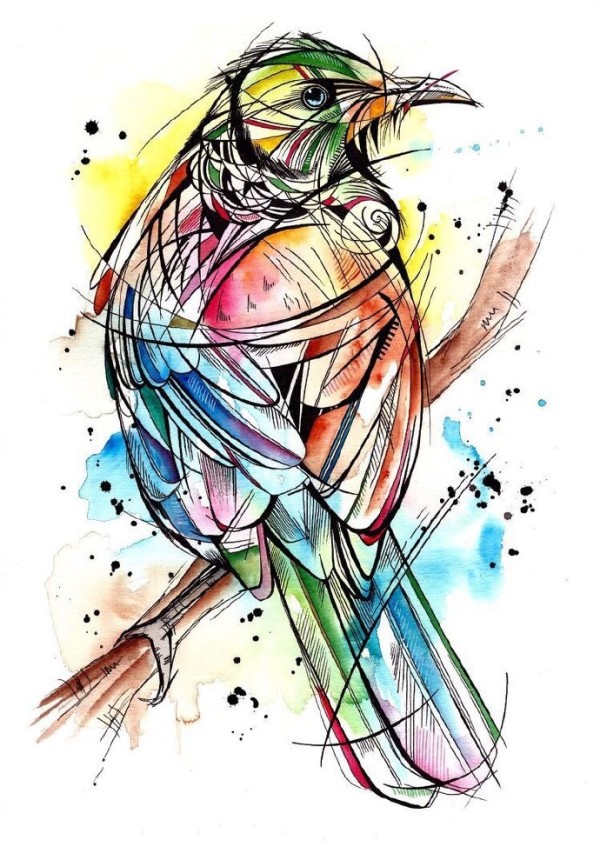 15款漂亮的水彩小鸟纹身手稿素材图片