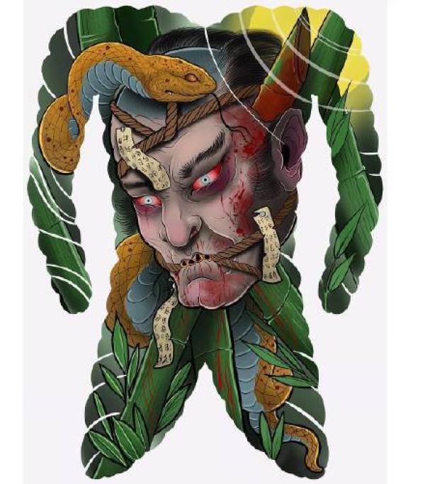一组满背大气九龙拉棺纹身图案作品和手稿