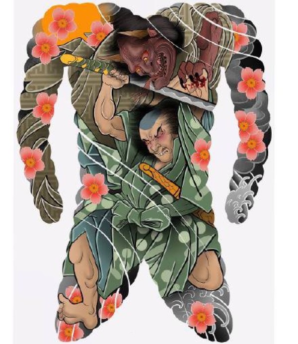 日式大板雾满背纹身手稿