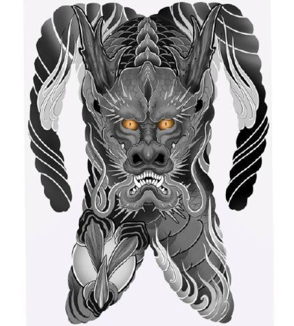 日式大板雾满背纹身手稿