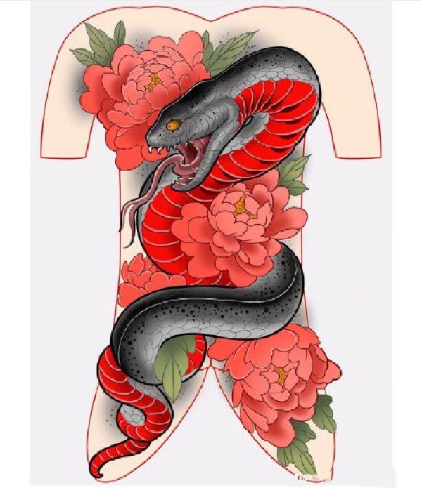 日式大板雾满背纹身手稿