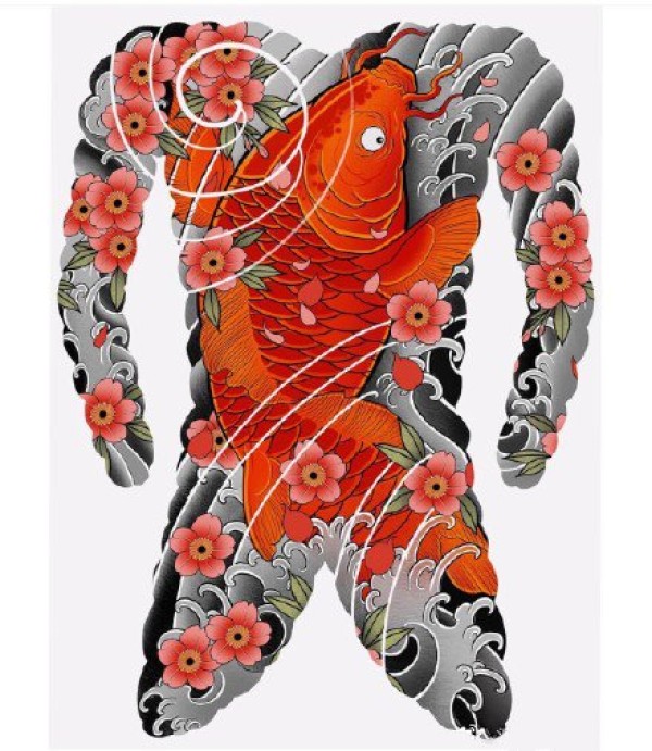 一组满背大气九龙拉棺纹身图案作品和手稿