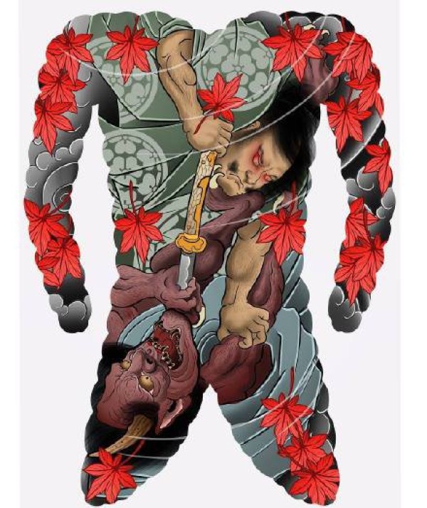 一组满背大气九龙拉棺纹身图案作品和手稿